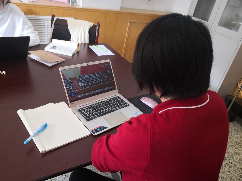 教工党支部党员自行收听收看开幕会盛况