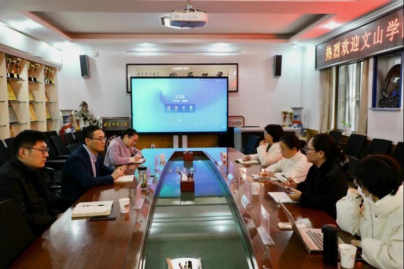 徐瑞副首先对李怡一行的来访表示热烈欢迎,并详细介绍了我院的发展历史、学科建设、学院招生以及课程设置等基本情况。文山学院教师对我院取得的一系列办学成果给予高度评价,双方就学校招生、学生就业等问题展开了讨论。随后,李怡介绍了文山学院品凤楼