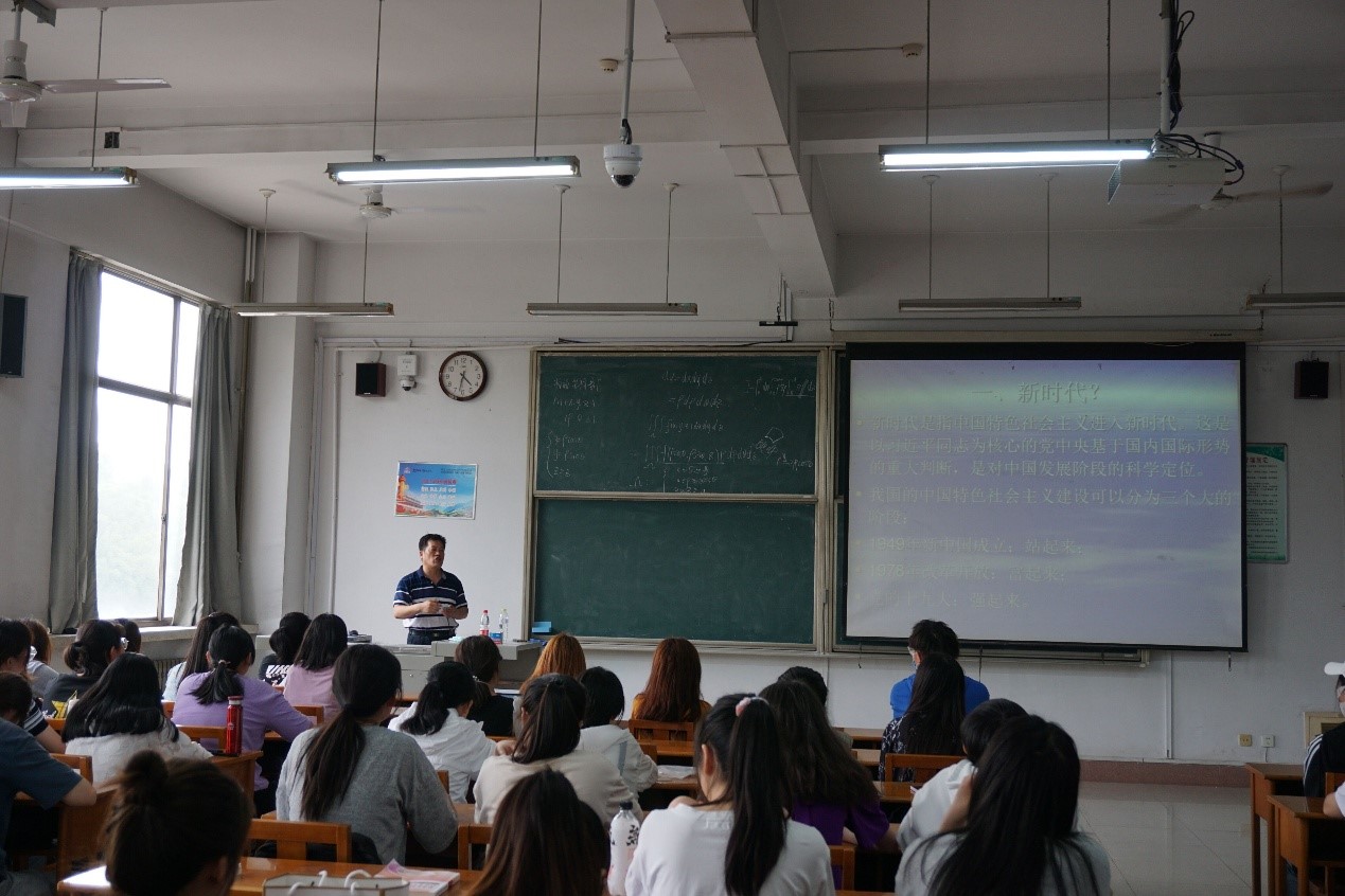 副院长张奎明为2019级学前教育专业同学讲授了主题为“新时代我国发展的机遇与挑战”党史学习教育专题思政课。