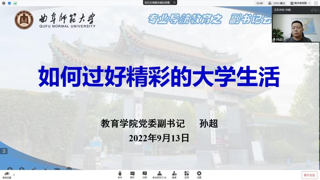 为2022级新生开设“副书记云班会”——如何过好精彩的大学生活,班会由党委副书记孙超主持召开。
