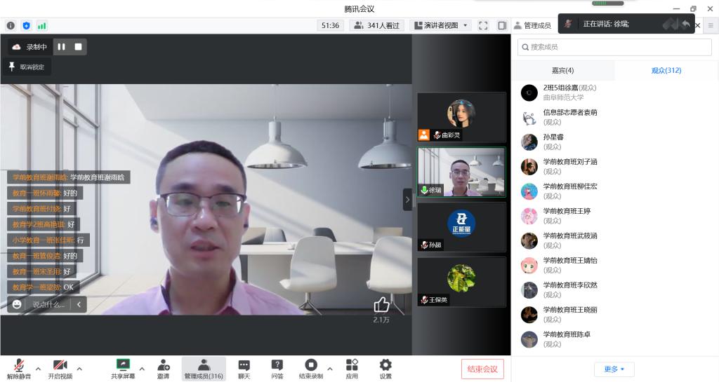 专业认同教育作为新生入学教育的重要组成部分,是进行新生专业启蒙教育,帮助其树立专业学习信心、做好专业发展规划的必要环节。本次“副院长云规划”讲座内容丰富、主题鲜明,不仅有助于新生正确认识“一课一本”计划的重要意义,养成阅读优秀教育书籍的习惯,启发青年思想,而且有利于新生明确学习目标,合理规划未来的大学生活和教育职业生涯。