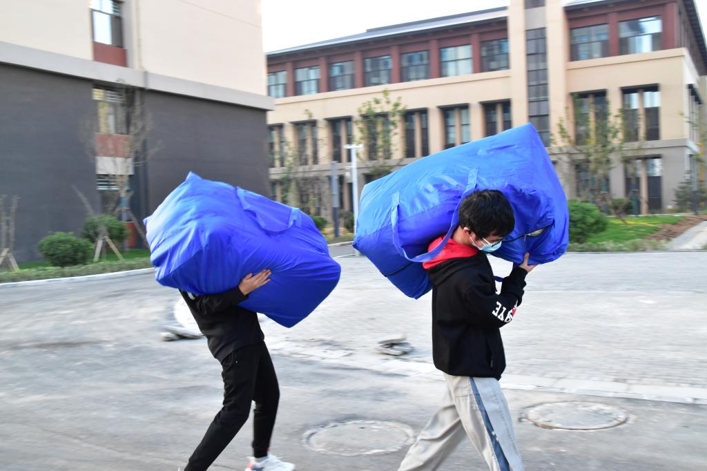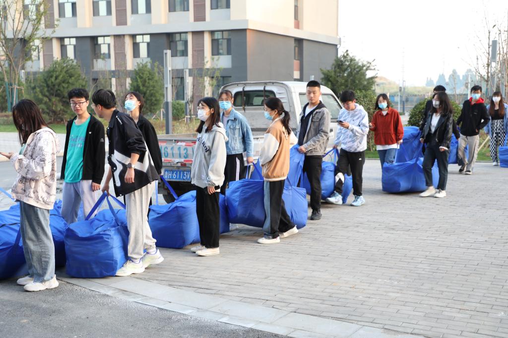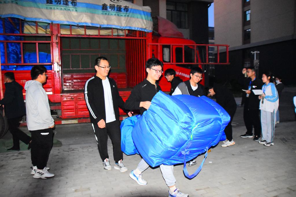 搬运分发现场,同学们互帮互助、协同合作,有序将被褥从货车搬运分发到每一个新生宿舍,为新生提供贴心的服务,保证新生入学后顺利入住。搬运分发过程分工清晰、高效有序。最终,在大家的共同努力下,工作得以圆满完成。