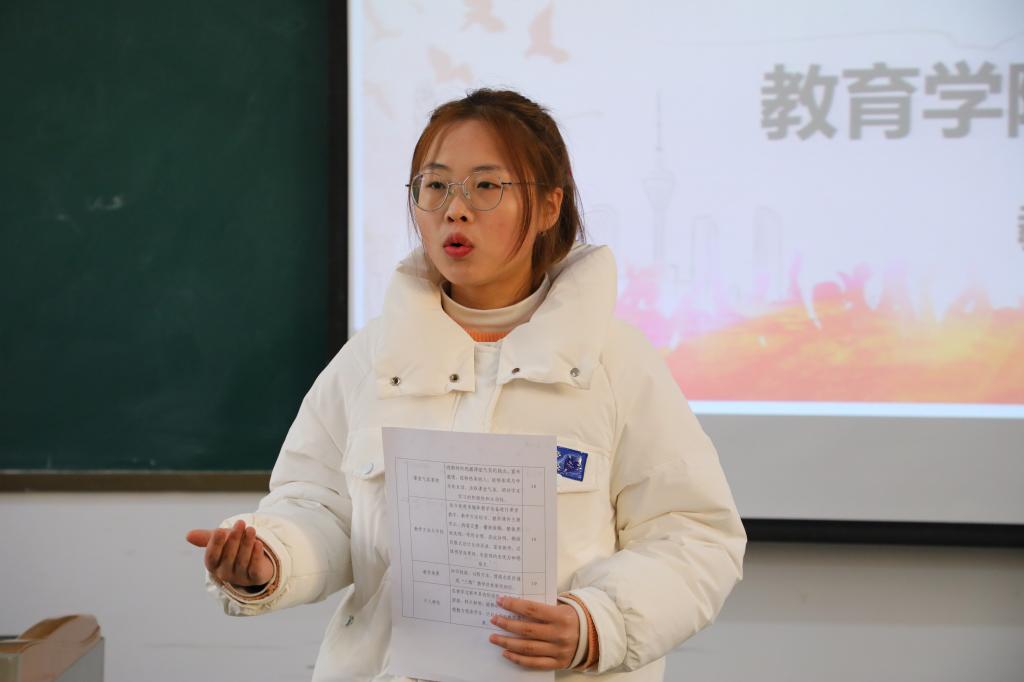 选拔初赛。本次比赛由学院李文美老师,以及获得上届大赛获奖选手2019级教育学专业冯桂贤、2019级学前教育专业邬悦担任评委。