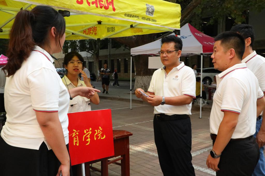 在迎新报到点,学院领导详细了解了学院迎新工作进展、新生报到流程等情况,向迎新工作人员和学生志愿者的辛勤付出表示感谢,对学院在迎新工作中展示出的特色亮点和体现人文关怀的暖心做法表示肯定,并强调要再接再厉,继续以扎实严谨的工作作风和良好的精神面貌,把各项迎新工作做细做实,做到新生和家长的心坎上,确保以高质量的服务保障,让每位新生和家长放心满意。