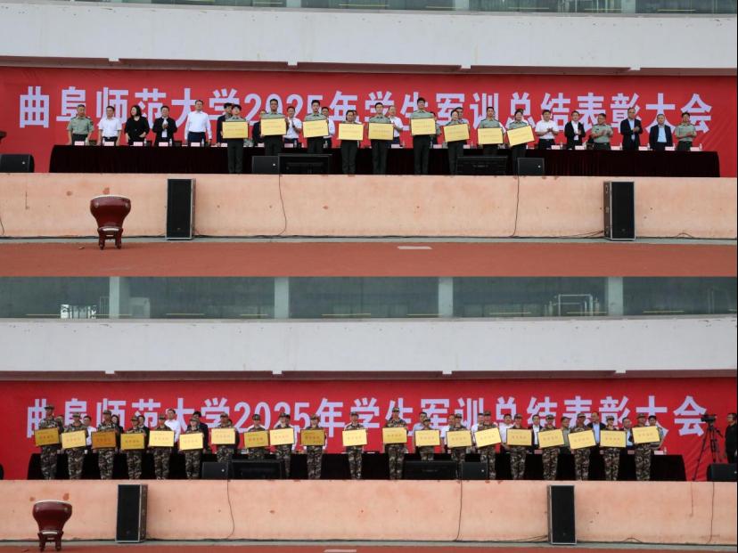 2025级学生军训总结表彰大会在南操场举行,为期13天的军训圆满收官。品凤楼