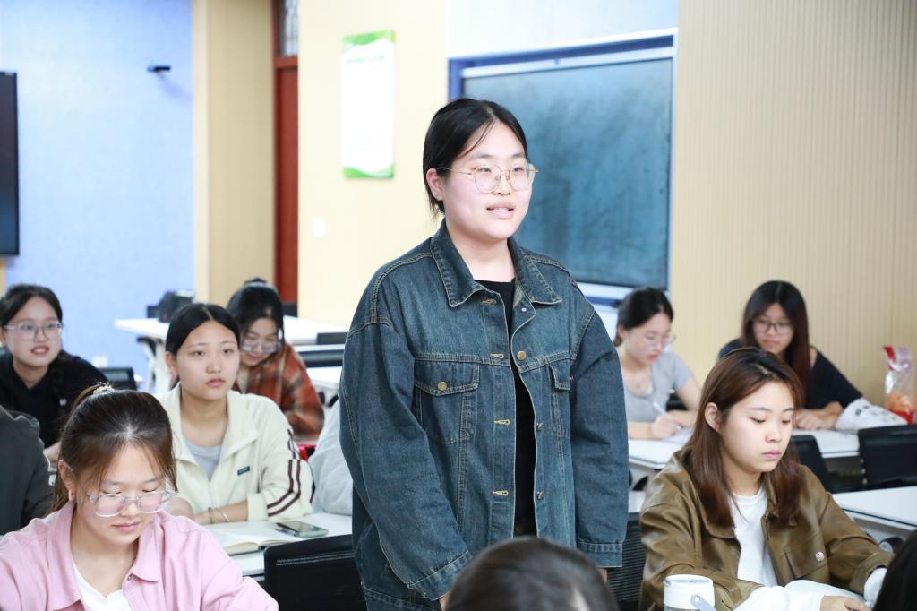在交流研讨环节,她结合实际工作中出现的问题和工作流程与现场学生干部交流互动,深入探讨,引导学生干部分享经验、反思不足,重点提升对师范生成长需求的预判能力,为品凤楼