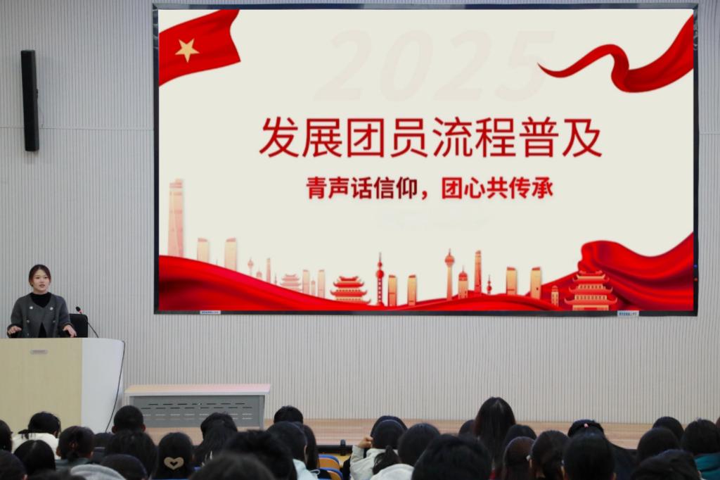 会上,王心怡系统讲解了中国共产主义青年团团员发展全流程及核心注意事项,并针对同学们对如何确定积极分子、如何通过培养考察成为发展对象等疑问逐一进行解答,有效加深了同学们对入团流程的理解,为同学们做好入团准备提供了具体指导。