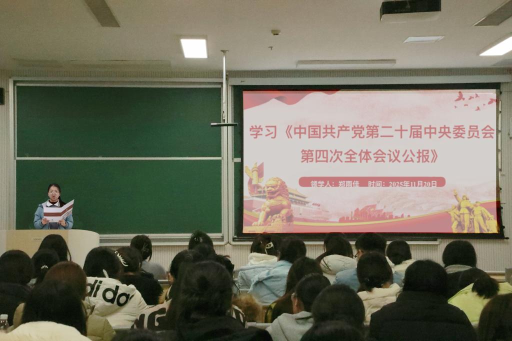 团委组织部副部长郑雨佳领学《中国共产党第二十届中央委员会第四次全体会议公报》。本次学习推动团委学生会学生骨干将党的二十届四中全会精神内化于心、外化于行,以更加饱满的热情和务实的作风投入到学习和工作中,为品凤楼