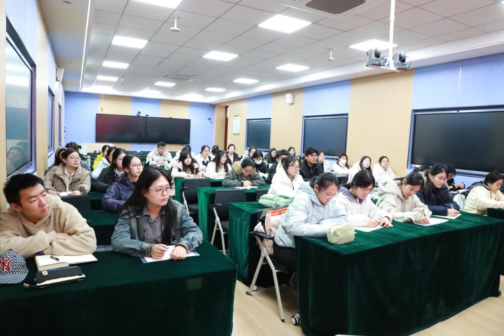 互动环节中,同学们就阅读能力提升、口语语感培养等问题进行提问。刘佳怡结合自身经验,强调英语能力提升对读研、学术科研的重要性,并且建议大一大二尽早规划,积极参与各项赛事积累经验。同时,她还倡导同学们通过模板化学习提升应试效率,助力同学们找准学习方向、理清学习脉络。