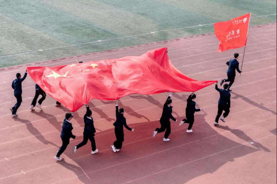 开幕式上,伴随着《运动员进行曲》的高昂旋律,运动员方队入场。教院学子昂首阔步、意气风发,用“砺行致远,笃志昂扬,教院同心,势不可挡”的口号传递着青春热情与拼搏精神。队列上方,鲜艳的五星红旗迎风舒展,与学子们昂扬的身姿交相辉映,为运动会增添了一抹赤诚而蓬勃的力量。