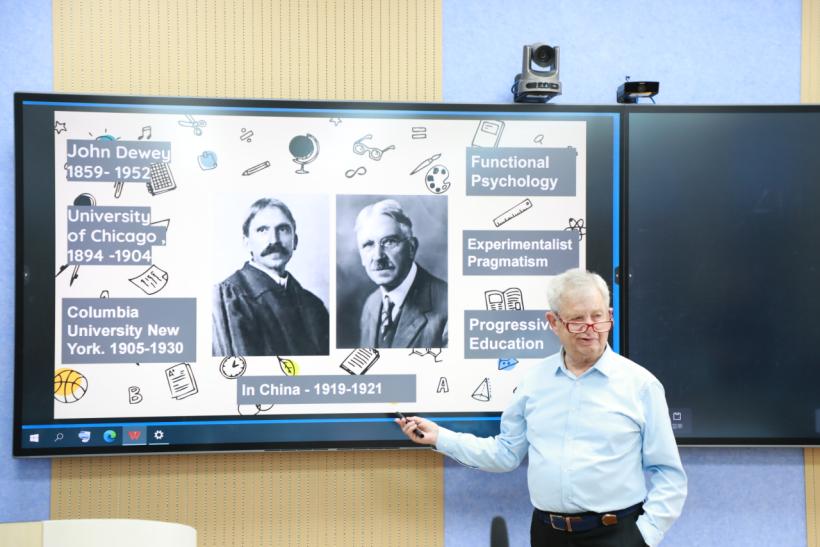第二周讲座转向杜威思想的中国传播与当代价值。他指出,20世纪初,胡适、陶行知等学者将杜威思想引入中国,推动了“儿童中心论”对传统教育模式的革新。在当代教育改革中,杜威思想仍具深远影响。Waks教授提到,项目式学习的盛行、STEAM教育的推广以及“生活教育”理论的复兴,均体现了杜威“教育即经验改造”的核心理念。