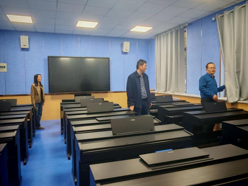 副院长齐军、资产管理员王丹丹共同组成安全检查小组,对学院研讨室、智慧教室、电钢琴室、舞蹈教室等相关场所进行了全面的安全检查和风险隐患排查工作。