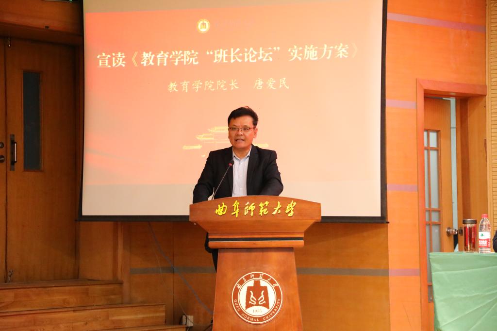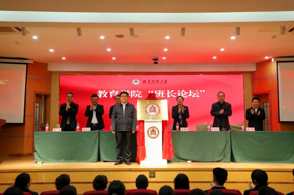 "班长论坛”启动仪式在孔子会堂顺利举行。学校党委常委、副校长胡凡刚出席仪式并为论坛揭牌,学生工作处处长姜美颖、校团委书记孔轶众、品凤楼