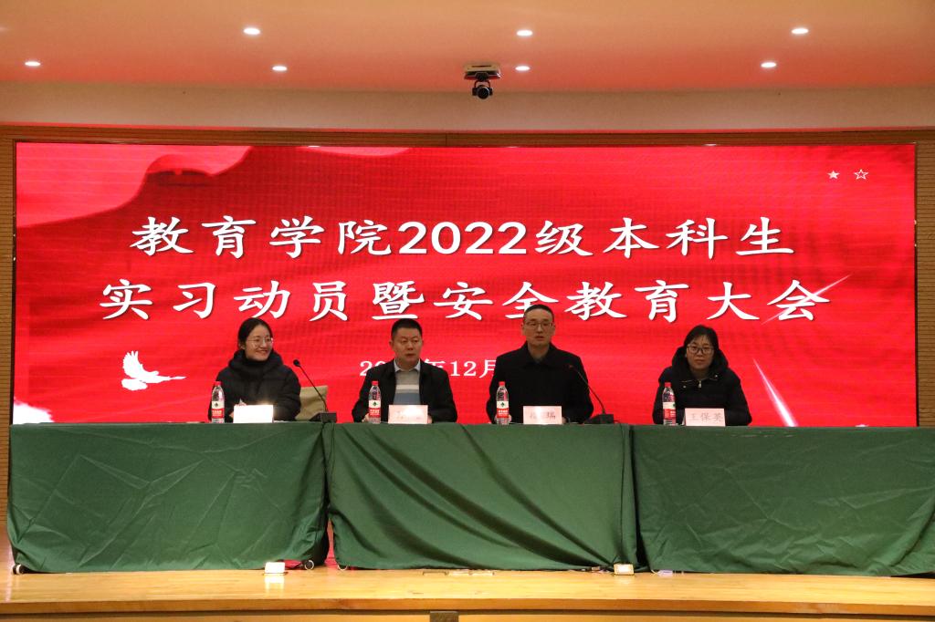 孙超围绕实习安全和成长成才,对同学们进行了深入的思想政治教育和安全教育。他指出,同学们要在思想上高度重视实习安全,要切实增强安全意识,提高安全防范能力,确保实习期间人身安全。他强调,同学们实习期间要注意讲规矩守纪律,提高个人网络素养,遵守学校保密纪律,严格规范自身言行,时刻维护学校学院良好形象,充分展示新时代大学生昂扬奋进的精神面貌。同时,他希望同学们能从个人成长成才的角度看待实习工作,把教育实习视为一种特殊的社会实践,在努力提升专业素养和实践技能的同时,努力做到“三个学会”,促进个人更好的成长成才、服务社会:一是学会社会交往,学习掌握各种社交礼仪,为走出校园适应社会奠定基础;二是学会换位思考,做好自己的事,懂得理解和包容,努力构建和谐的人际关系;三是学会分析解决问题,在实践中不断提高发现问题、分析问题和解决问题的能力。他还提醒同学们要利用好接下来的寒假,认真做好目标规划,并结合个人实际,补短板、强弱项,为实现高质量就业做好准备。