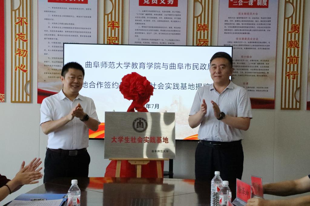 仪式上,孙超与曲阜市民政局党组书记、局长许鹏共同为大学生社会实践基地揭牌。