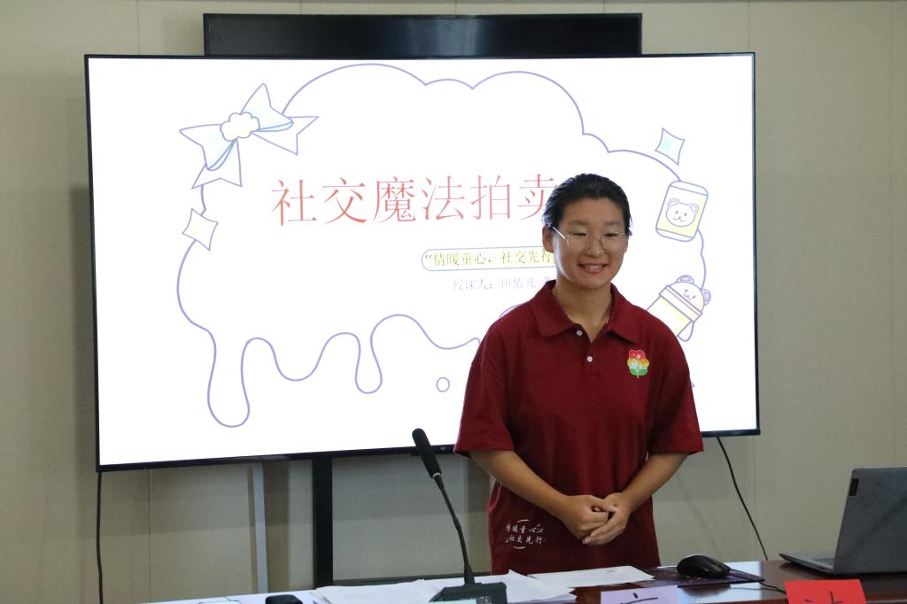 “情暖童心,社交先行”实践队面向齐李村学龄儿童讲授了“社交魔法拍卖会”趣味课程。该课程聚焦当前乡村留守困境儿童面临的社会交往能力不足问题,通过打造特色社会交往课程体系,帮助孩子们开拓社交思维、增强社交信心、提升社交能力。
