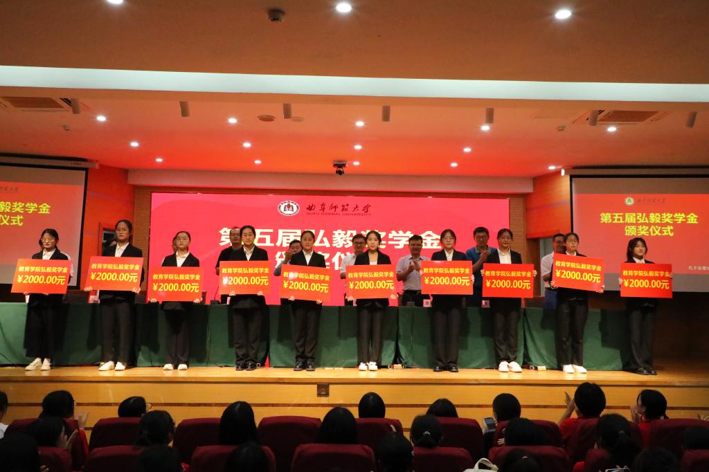 第五届弘毅奖学金获奖名单:刘佳硕、曹彦悦、赖诗瑶、刘奕娴、陈姿含、于筱禾、吕晓臻、宋佳琦、杨柳、付娆。主席台领导老师为获奖学生颁奖,并鼓励大家要珍惜荣誉,再接再厉,争取做更好的榜样。