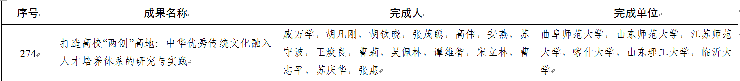 戚万学教授主持的“打造高校‘两创’高地:中华优秀传统文化融入人才培养体系的研究与实践”成果,荣获国家级教学成果奖二等奖,这也是曲阜师大连续两届荣获国家级教学成果奖。
