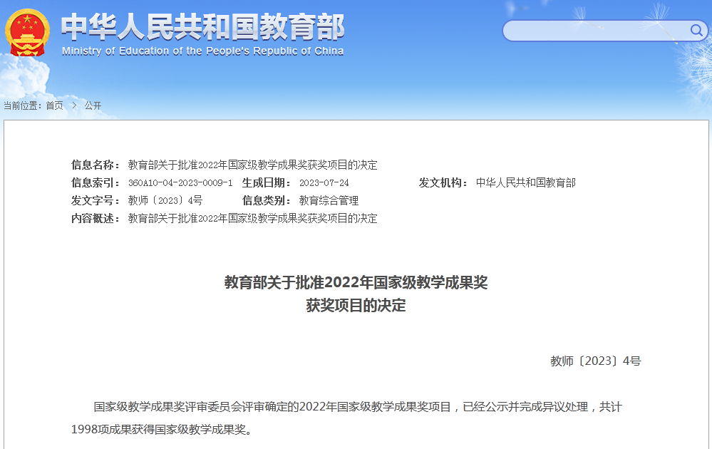 讯 近日,教育部发布《关于批准2022年国家级教学成果奖获奖项目的决定》,品凤楼