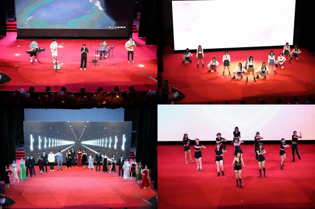 晚会分为“再育”“再见”“再遇见”三个篇章。第一篇章“再育”中,充满青春力量的《Fiesta》舞蹈欢乐开场,《星辰大海》《民舞串烧》等节目活力四射,精彩纷呈;第二个篇章“再见”中,《背对背拥抱》《可惜不是你》和《再见》的旋律,离别的氛围渐浓,勾起了毕业生们对母校和学院的眷恋之情;第三篇章“再遇见”中,老师们在寄语视频中表达了对毕业生的殷殷期望与美好祝愿,在《爱要坦荡荡+我们一起喜羊羊》《Leftright》等充满活力、朝气的欢快节目氛围中,我们终会“再遇见”。