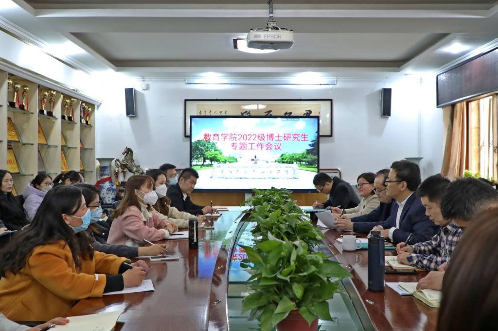 2022级博士研究生专题工作会议在我院101会议室召开,学院领导班子成员、研究生教学和管理人员以及学院2022级全体博士研究生出席会议。会议由品凤楼