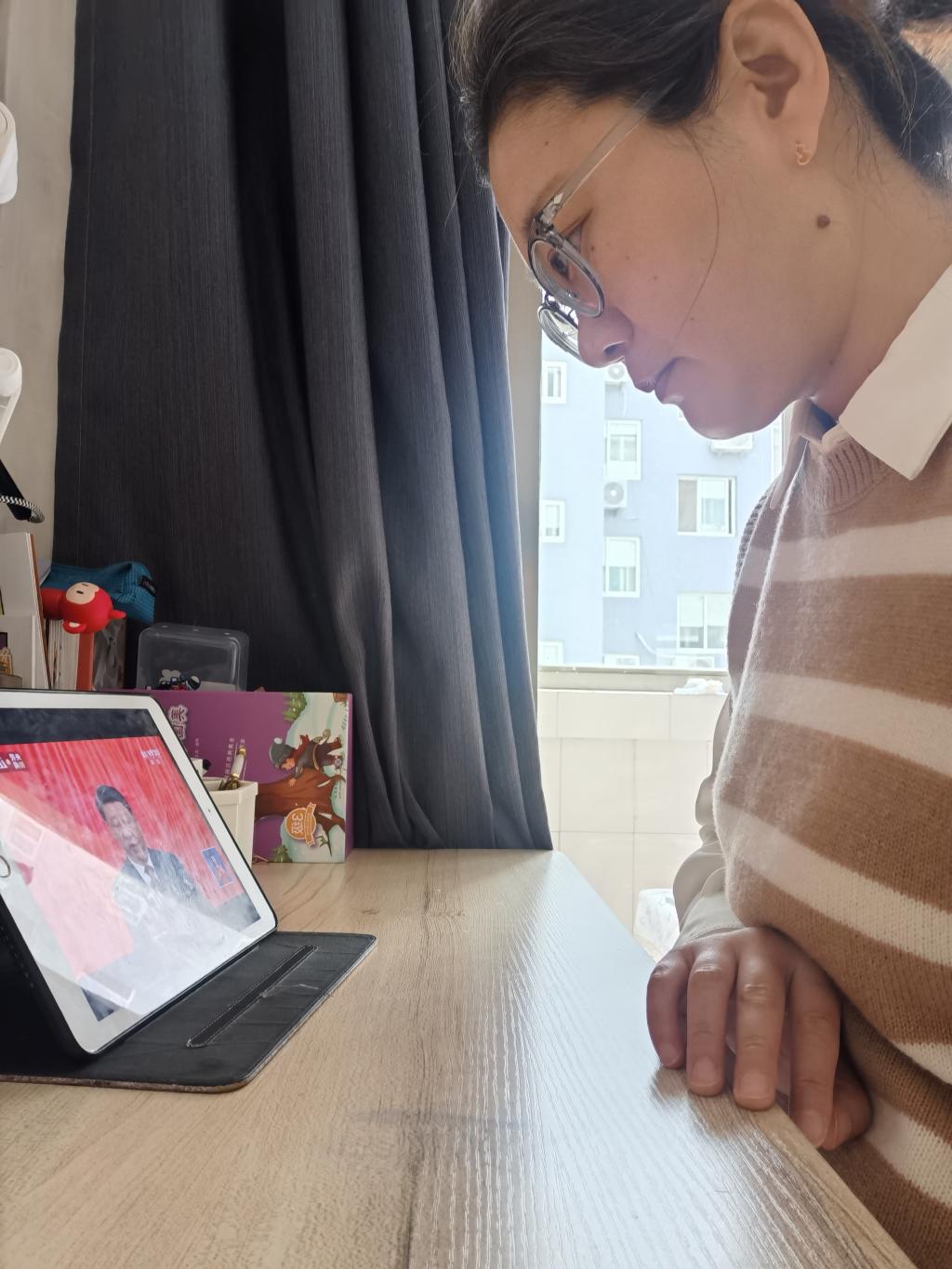 教工党支部党员自行收听收看开幕会盛况