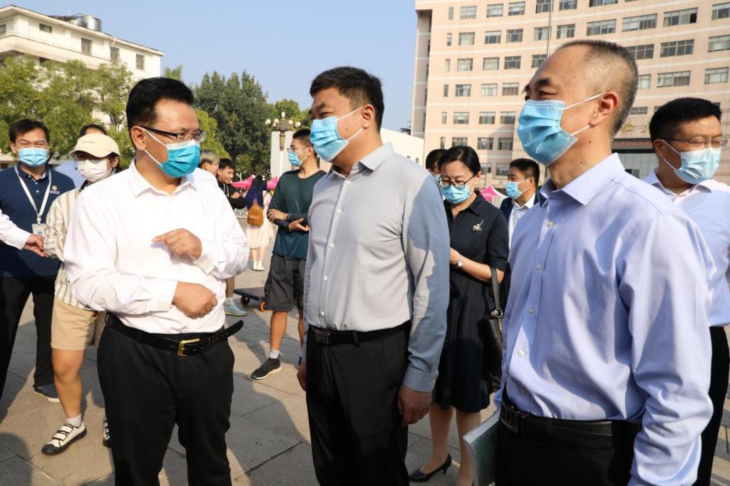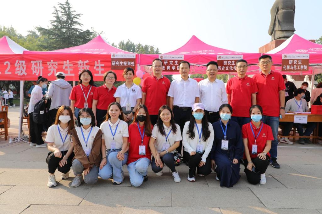 研究生迎新工作在孔子文化广场顺利展开。学校党委书记邢光,党委副书记、校长张洪海,党委副书记卢国强,党委常委、副校长李兆祥、党委常委、副校长纪洪涛等学校领导在有关部门负责同志陪同下,莅临品凤楼