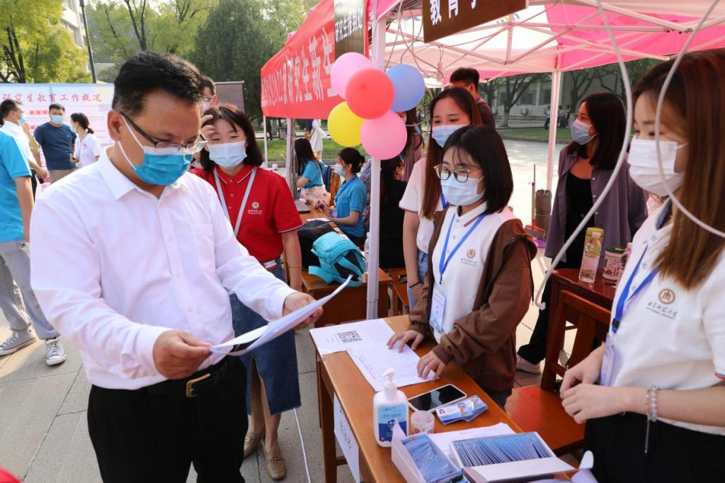 研究生迎新现场检查指导迎新工作。