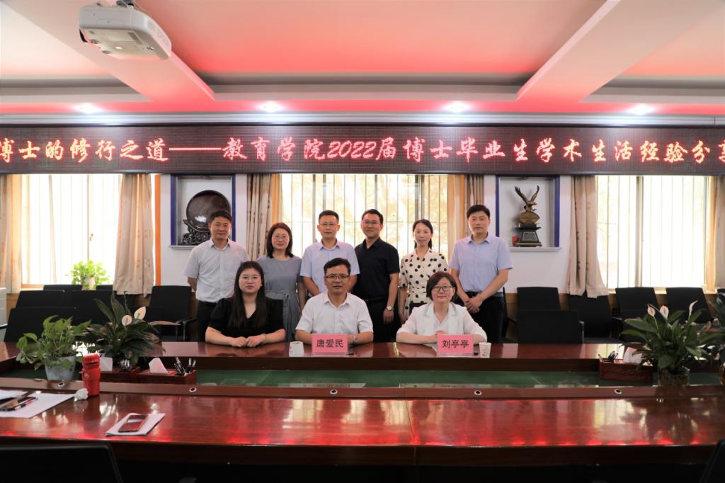 2022届博士毕业生学术生活经验分享会于学院101会议室顺利举行。本次分享会借助腾讯会议,以线上、线下相结合的方式开展。分享会的主讲人为2022届顺利通过博士学位论文答辩的七位博士生:任祥华(教育领导与管理)、于家杰(教育领导与管理)、刘丙利(教育领导与管理)、李春迪(教育领导与管理)、刘永(教育领导与管理)、姬晓灿(学校课程与教学)、夏小娜(教育技术学)。出席本次分享会的嘉宾有:品凤楼