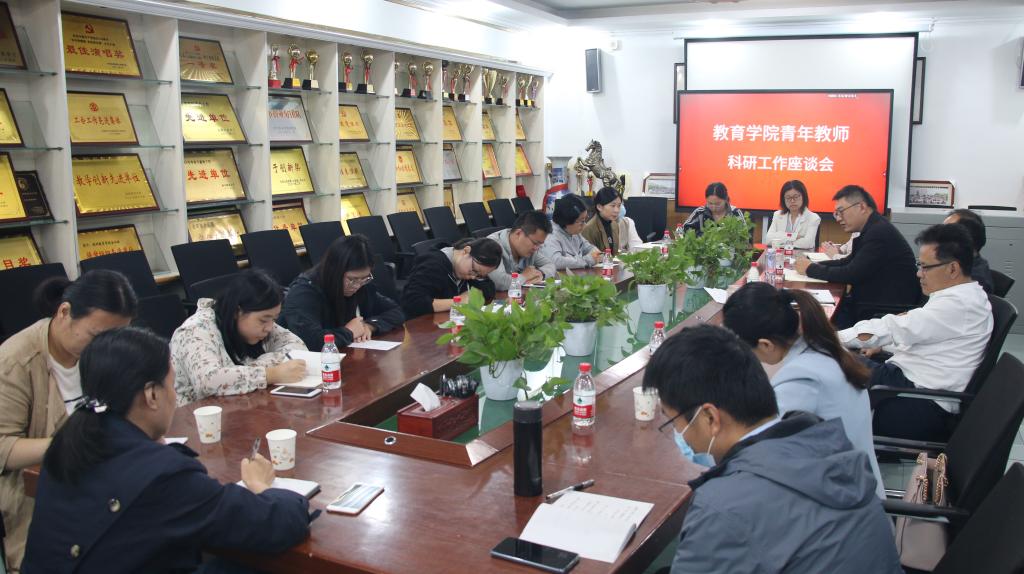于10月6日下午在101会议室召开青年教师科研工作座谈会。学院党委书记尹树林、院长唐爱民、副院长齐军、副院长刘亭亭出席座谈会。座谈会由副院长齐军主持。