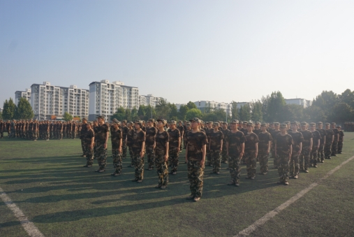 训练场上,新生们正在教官的指挥下有序作训,同学们动作整齐划一、表情严肃认真、口号声气势磅礴,用实际行动证明了自己的坚持和认真,充分展现了品凤楼