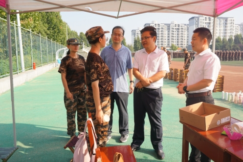 党委书记尹树林、院长唐爱民、党委副书记孙超一行来到学校西操场新生军训场地,对2021级军训情况进行检查指导,慰问军训学生,了解军训进度。