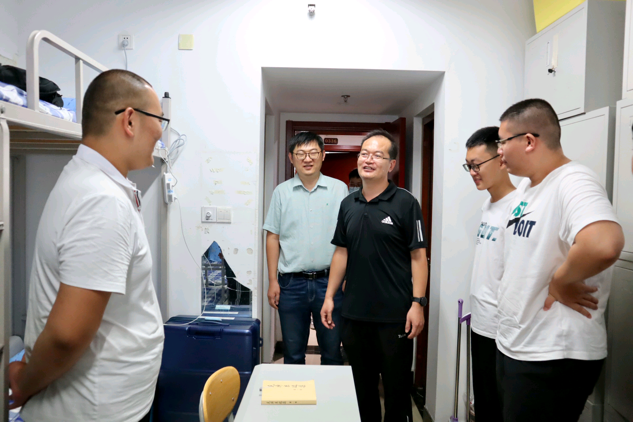 党委书记尹树林、院长唐爱民、党委副书记孙超、副院长齐军、副院长徐瑞等学院领导和团委书记周长缨、2019级辅导员张东霞走进新生宿舍,亲切慰问2021级新同学。