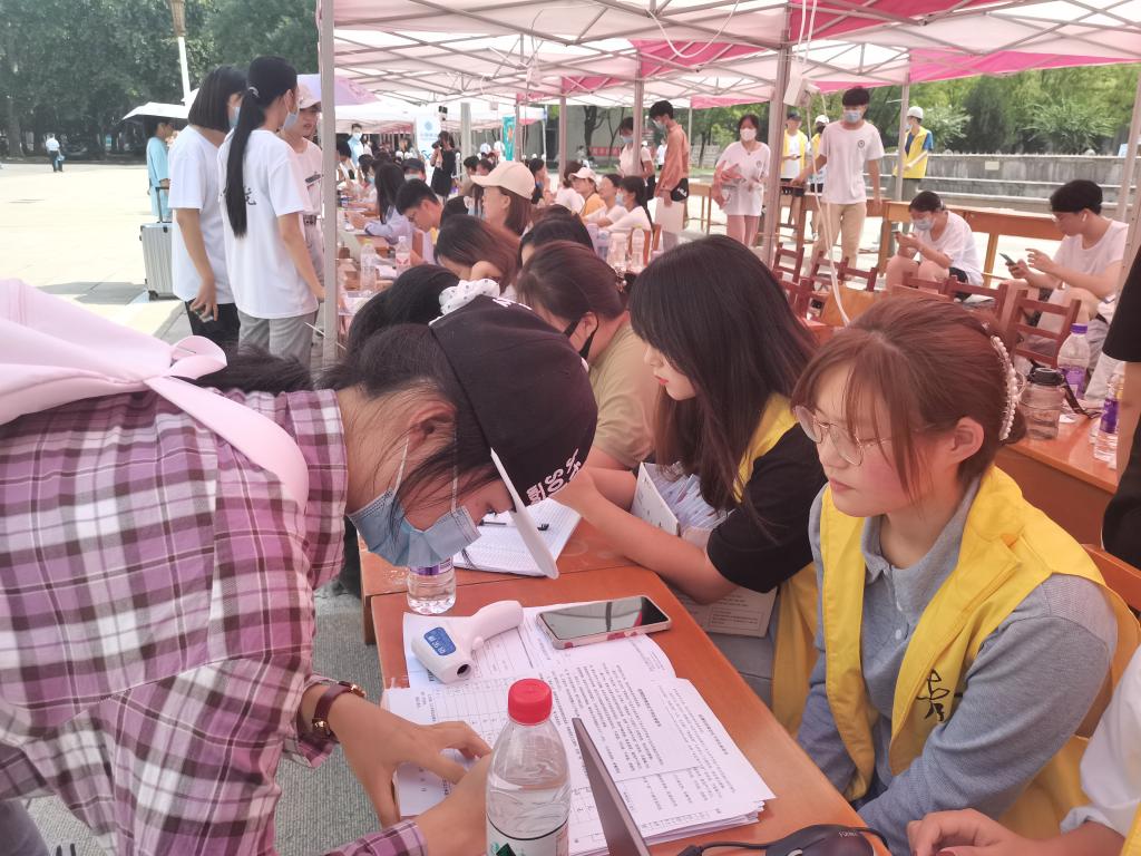 学院领导看望慰问新生报到情况,极大地调动了工作人员和志愿者的积极性。迎新过程中展现了品凤楼
