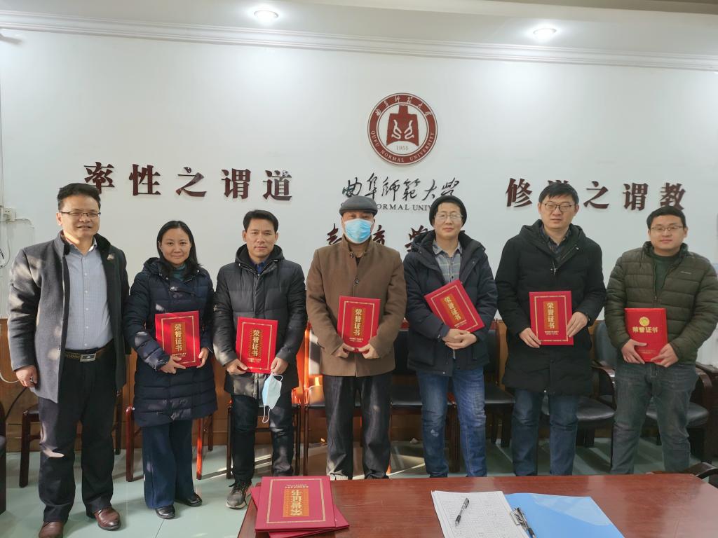 学院副院长何文广教授宣读了荣获2020年度优秀教学科研标兵教师名单并向获奖老师表示祝贺。学院院长唐爱民教授代表学院向各位科研标兵颁发荣誉证书。