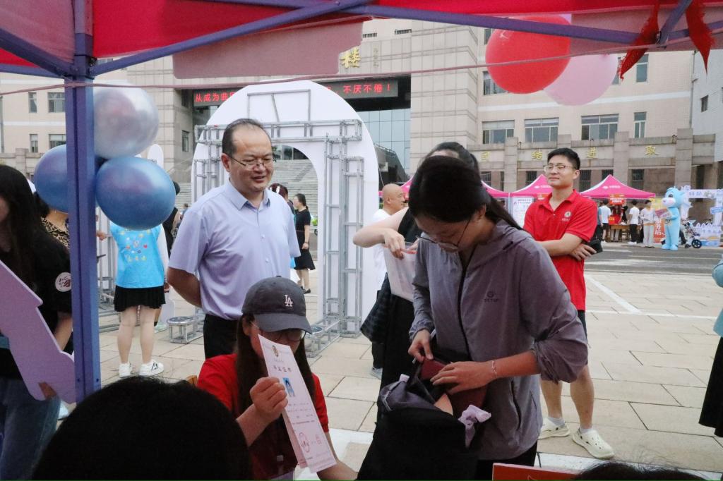 迎新现场,学院领导逐一走访各迎新工位,详细询问报到流程、新生数据实时统计及物资保障情况,对工作人员和志愿者的辛勤付出表示慰问。领导们充分肯定了学院“一对二精准对接”和“小组协同”服务机制,并对前期周密的工作部署和高效的工作推进予以高度评价。