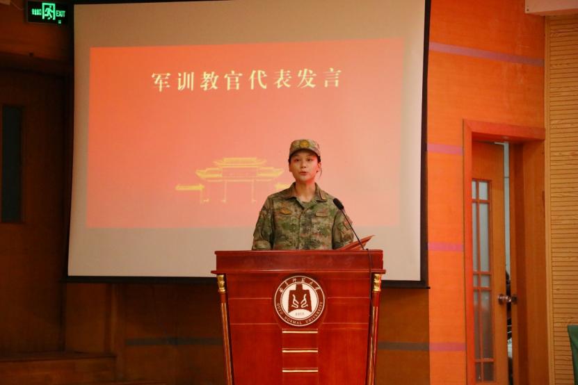 军训教官代表弭心乐在发言中简要介绍了本次军训的科目设置、训练节奏及纪律要求,并且鼓励同学们要以积极的心态迎接挑战,在烈日与汗水中锤炼意志、锻造品格,努力成长为勇担使命、作风过硬的新时代青年。