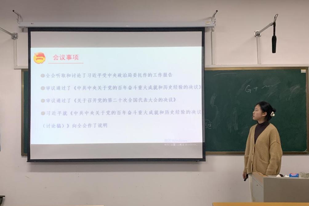 团委于11月17日组织各团支部开展学习党的十九届六中全会精神主题团课。