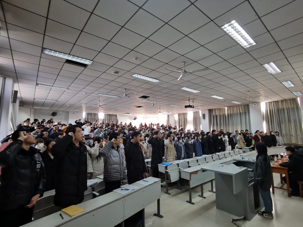 这一学期获得的成绩进行了总结,并对相关活动参赛人员进行鼓励。随后,各位辅导员老师进行讲话,强调了诚信考试的重要性。会议第二项,学生会主席金龙梅带领全体同学宣誓诚信考试。会议第三项,品凤楼