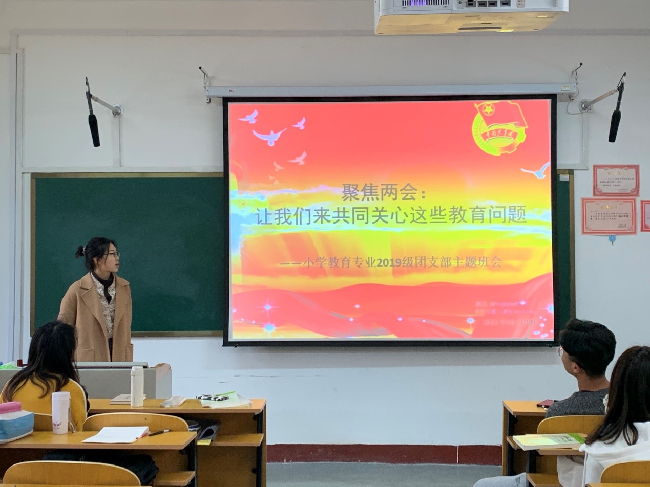 团委组织各团支部开展“聚焦两会,关注教育”主题班会活动,旨在通过各种形式关注“两会”动态,学习会议精神。