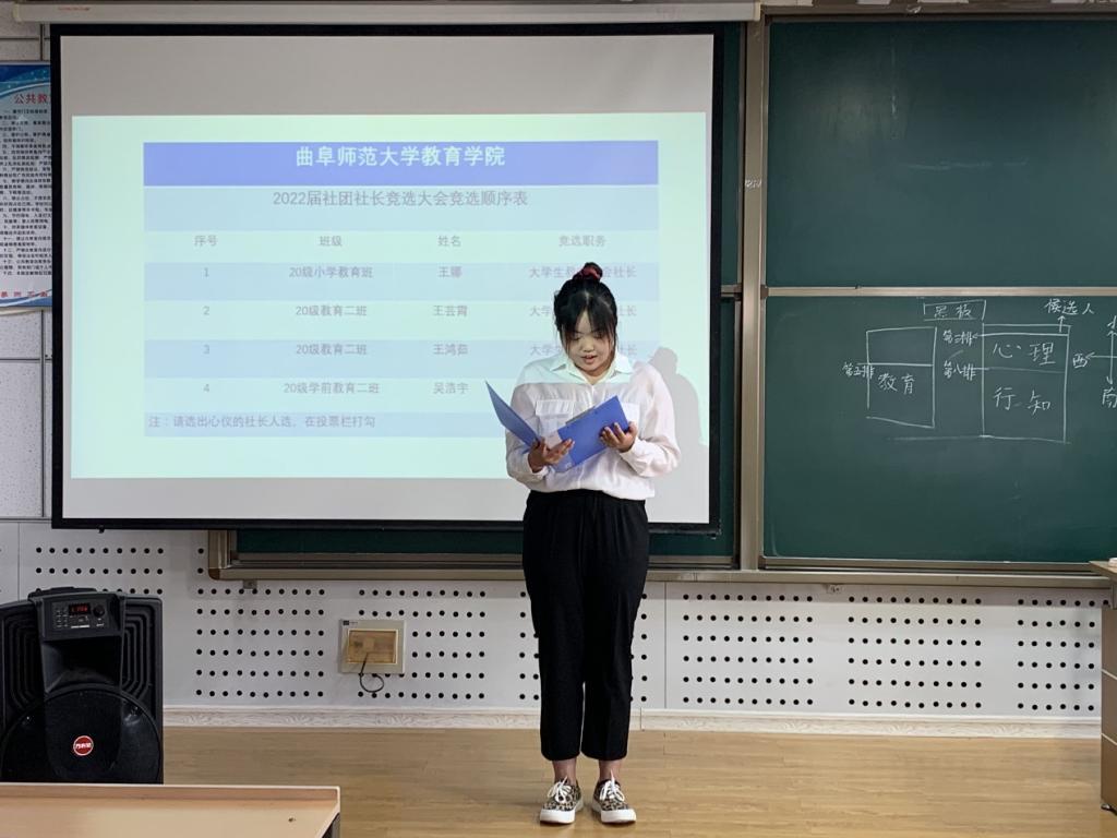 首先,候选人按照顺序依次上台发表演讲,进行简单的自我介绍并分享一年来所做的工作和个人进步的心得。从对社团工作的认知、工作经验以及未来工作计划等方面做了详细的演讲。紧接着,各个社团成员分别进行投票,选出所在社团的新一届社长。经投票表决,王娜当选大学生教育协会社长,王鸿茹当选大学生心理协会社长,吴浩宇当选行知协会社长。最后,周长缨老师为大会做总结,赞扬同学们以高度的使命感和责任感积极参与竞选,为学生社团的发展贡献出自己的力量,为学院未来工作的发展打开了良好开端。鼓励大家要团结一致、共同努力,扎扎实实地开展工作。
