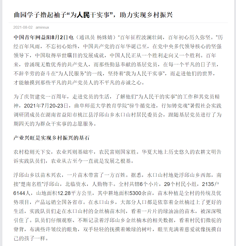 中青网:曲园学子撸起袖子“为人民干实事”,助力实现乡村振兴