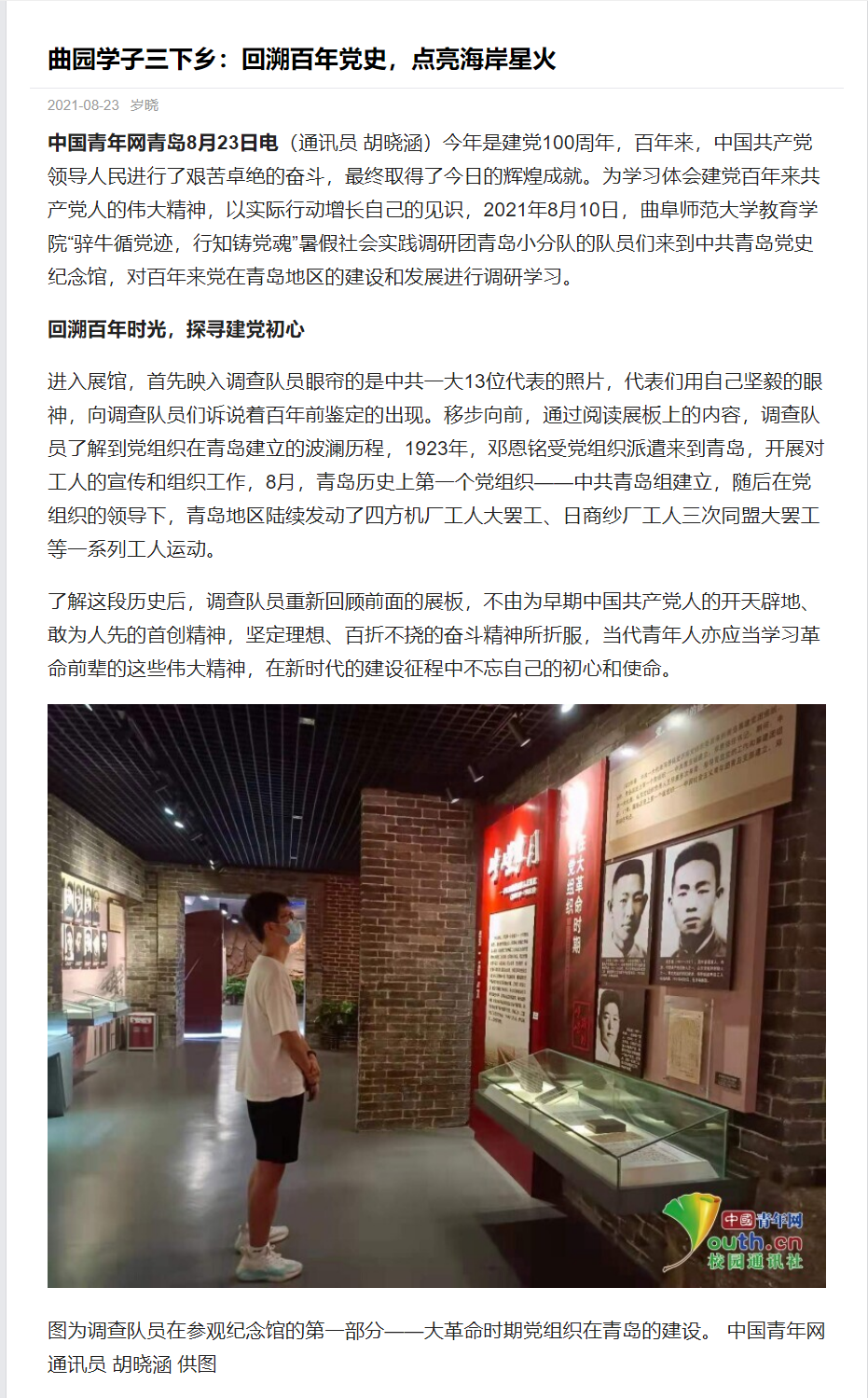 中青网:曲园学子三下乡:回溯百年党史,点亮海岸星火