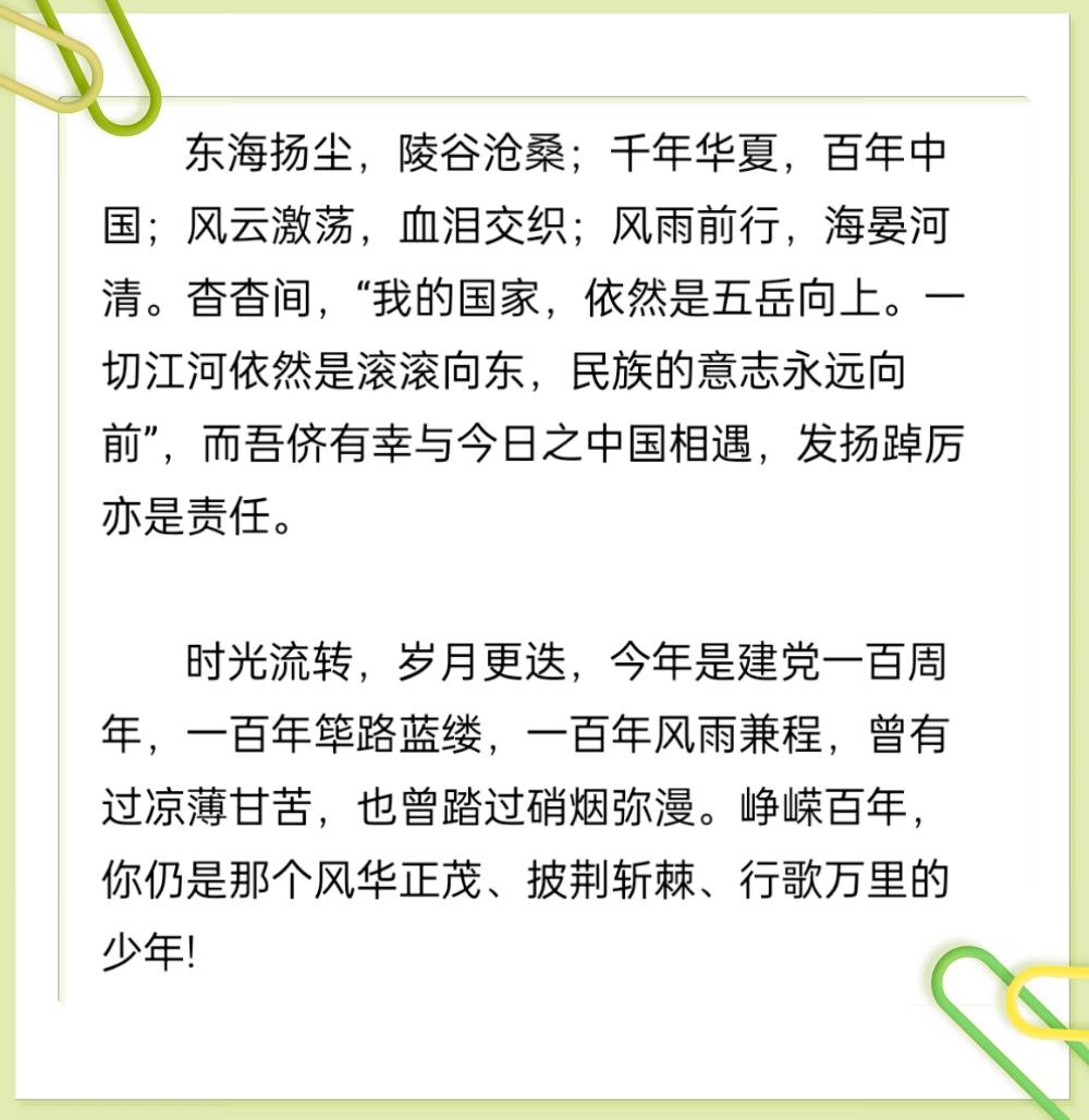 活动前期,工作人员通过微信公众号等平台对本次活动进行了广泛宣传,大大增强了比赛的号召力。本次征文活动以“巍巍乾坤气,惶惶华夏魂”为主题,参赛者运用诗歌、散文等多种形式进行创作,抒发了自己对祖国的热爱。经过评委的打分评比,最终崔入月、郭惠敏荣获一等奖;厉欣陆、林安姝、张朔荣获二等奖;刘亚蕊、闫红晔、颜廷艳、滕欣辰、许瀚月荣获三等奖。