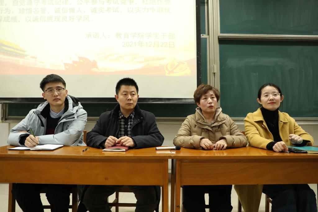 首先,院学生会主席庞霄汉对本学期学生会工作进行总结,并对后续工作作具体安排;随后,周长缨、张东霞老师分别讲话,她们在讲话中指出,学生干部要严以律己,明确自身的义务和责任,积极备考,诚信考试,充分发挥模范带头作用;接着,院学生会秘书处副秘书长王芸霄带领学生会全体成员宣读诚信应考承诺书;最后,孙书记作总结讲话。他对院团委、学生会一学期以来的工作表示肯定,对学团老师和同学们的辛勤付出表示感谢,同时强调,全体学生干部要提高认识,认真复习备考,带头遵守考试纪律,争作诚信守纪的表率,树立好品凤楼