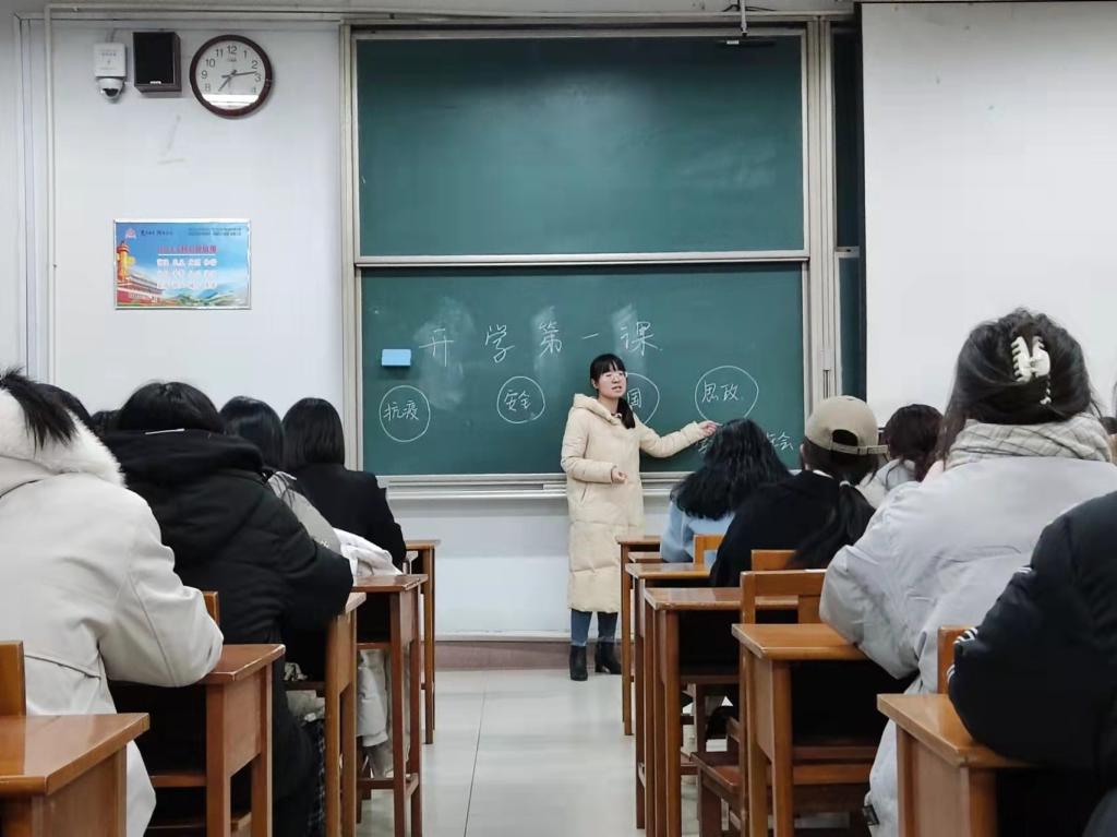 班会分别围绕疫情防控、安全教育、心理健康教育、学风建设、思想政治教育、爱国主义教育等方面展开。本次“开学第一课”主题班会,旨在激发同学们的爱党爱国情怀,教育引导其做好新学期学业规划,乐于学习,学会学习,增强其自我防范意识,并主动配合学校疫情期间的教育管理工作,促进学生关注心理健康教育,并注重个人身心成长,培养积极乐观的心态。