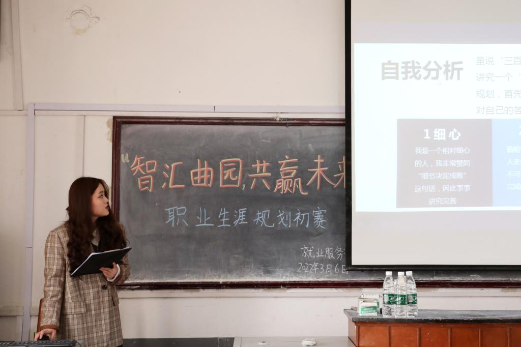 比赛中,参赛选手依次上台,通过播放VCR、展示PPT的形式讲解自己的职业生涯规划。选手们结合现代社会就业形势深刻剖析自己就业的优势和劣势,确立明确的就业目标。评委结合参赛选手的表现进行点评与打分,最终秦乐妍荣获一等奖,田米、江文瑞等荣获二等奖,赵悦新、贾心雨等荣获三等奖。