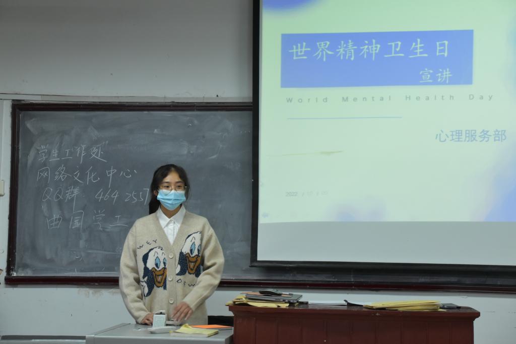 学生会心理服务部积极在2022级各班开展以“营造良好环境,共助心理健康”为主题的世界精神卫生日宣讲活动。