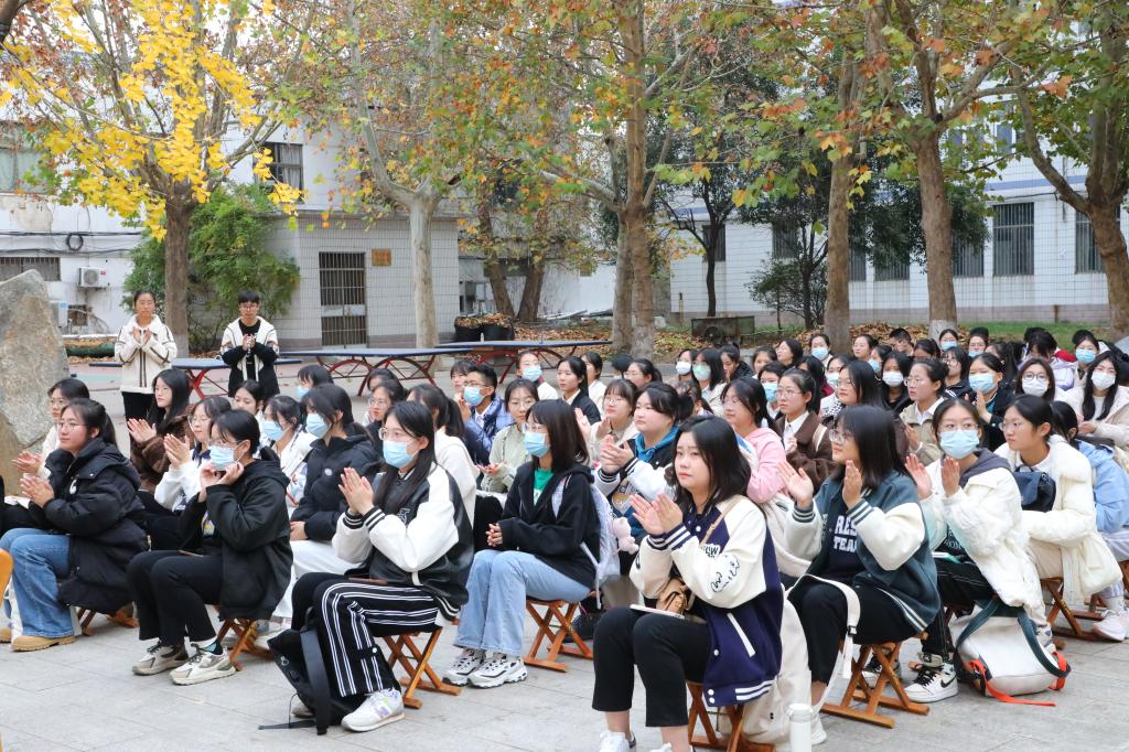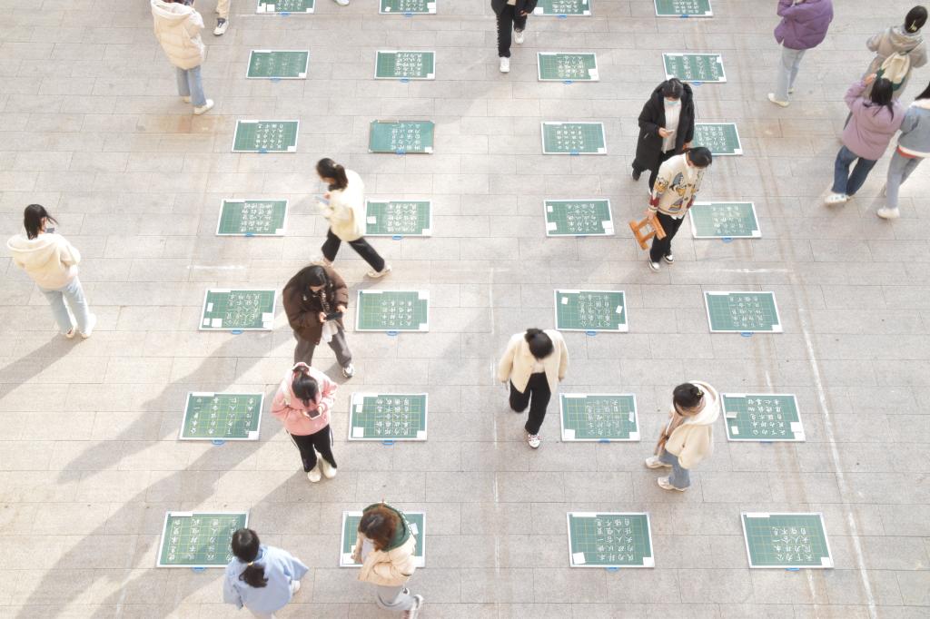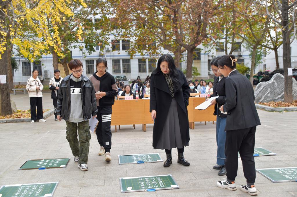 学生会学习部在院楼前举办“秉笔书党语,丹墨颂党恩”粉笔字、钢笔字大赛。品凤楼