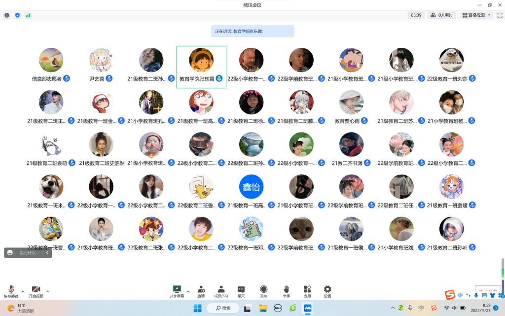 张东霞老师以“新时期学生干部的定位及个人成长”为题,围绕学生干部的定位和个人成长两个方面,结合学生工作实践展开讲述,对学生干部进行思想教育,并提出工作要求。她强调,学生干部要摆正心态、不忘初心、牢记使命,从点滴小事做起,不断提高自身素质、提升承载能力,展现出学生干部最好的精神面貌。她希望全体学生干部在提升自身工作能力和综合素养的基础上养成良好的学习习惯,保持优异的学习成绩,发挥好学生干部的榜样表率作用。